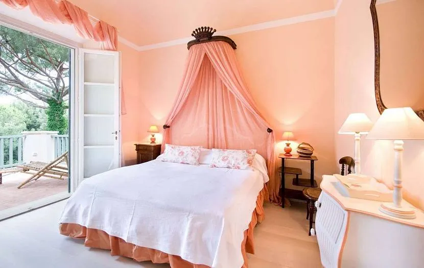 Отделка стен спальни в приятном персиковом цвете – фон для светлой мебелиИсточник inmyroom.ru