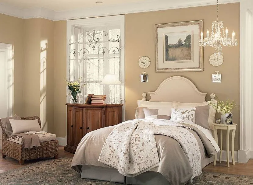 Припыленный цвет экрю в интерьере спальниИсточник arlind.ru