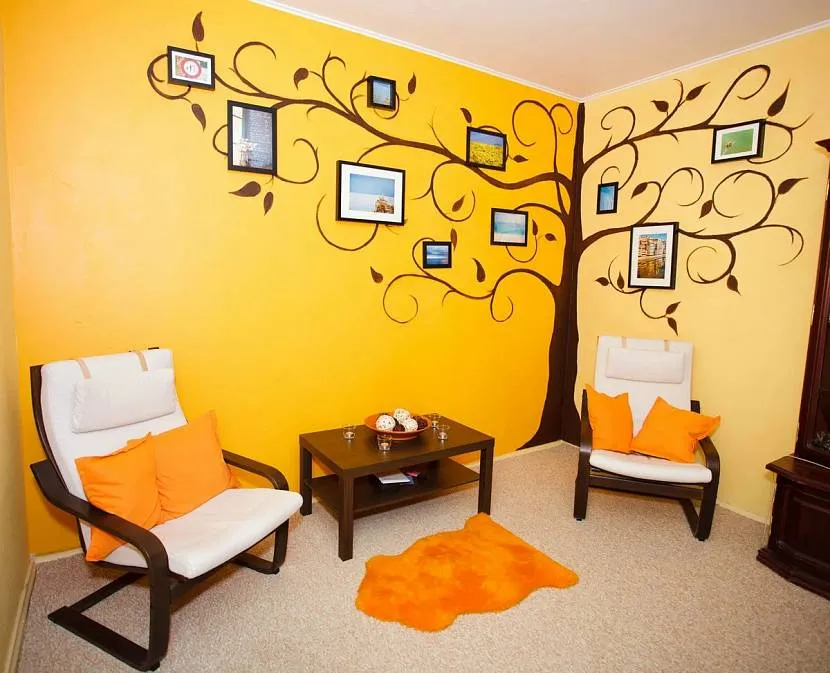 Роспись в отделке стен скрывает остроту угла за коричневого на желтомИсточник avatars.mds.yandex.net
