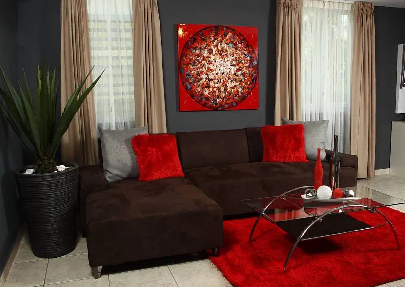 Кофейный и красный с коричневым придают пространству уюта и комфортаИсточник i.pinimg.com