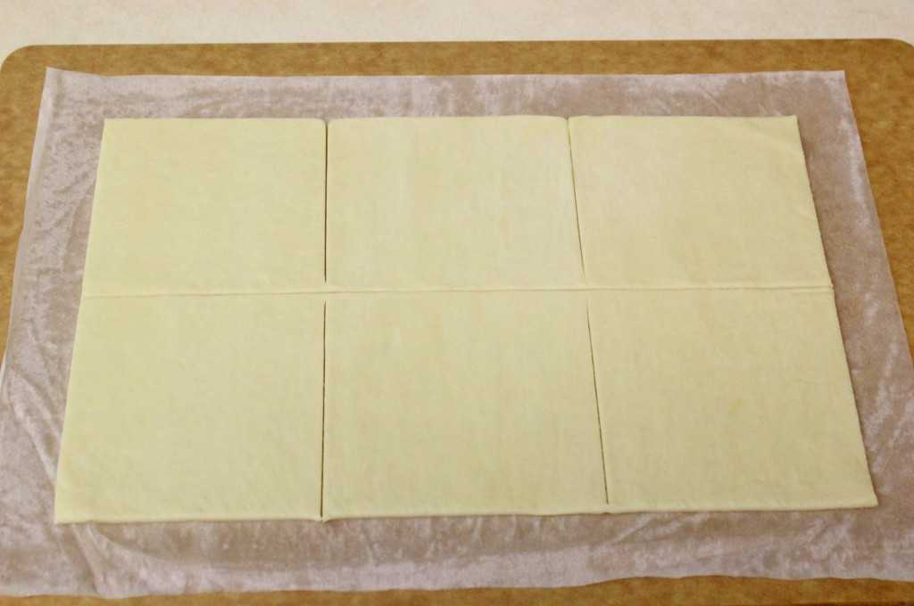 - Разложить кусочки слоеного теста на бумагу.