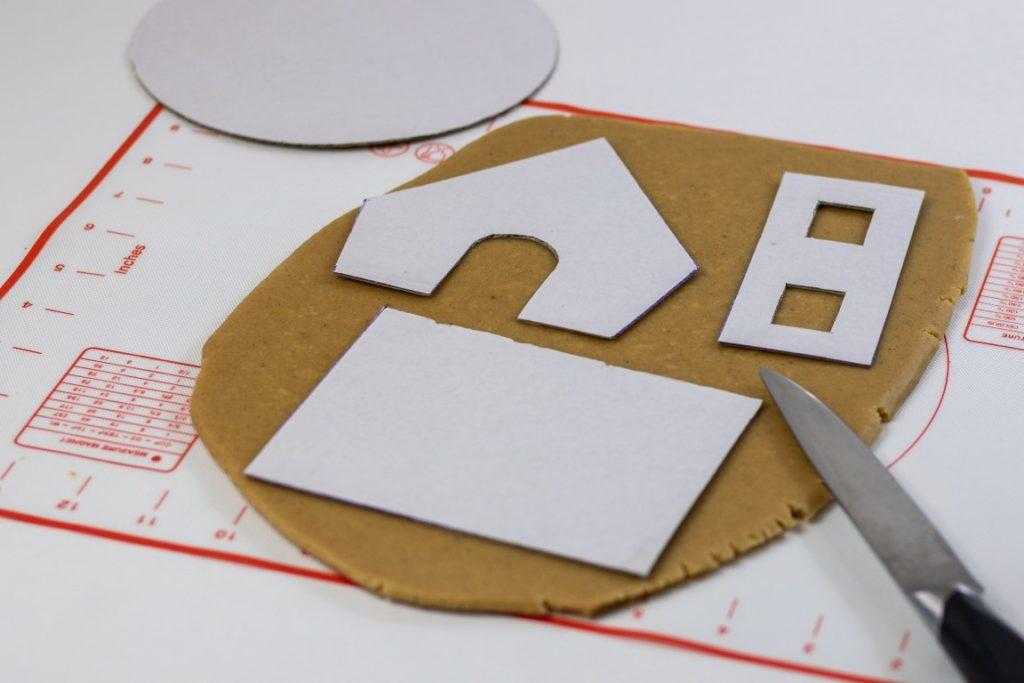 Чтобы не допустить этого, вырезайте детали сразу же на пергаменте, тогда вам не составит труда перенести их на противень. Толщина пряничного фасада и стен должна быть около 5 мм, а толщина крыши – 4 мм.