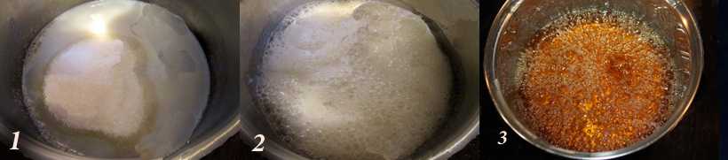 - Готовность карамели проверяют холодной водой, куда капают немного карамели. Она должна стать полностью твердой.