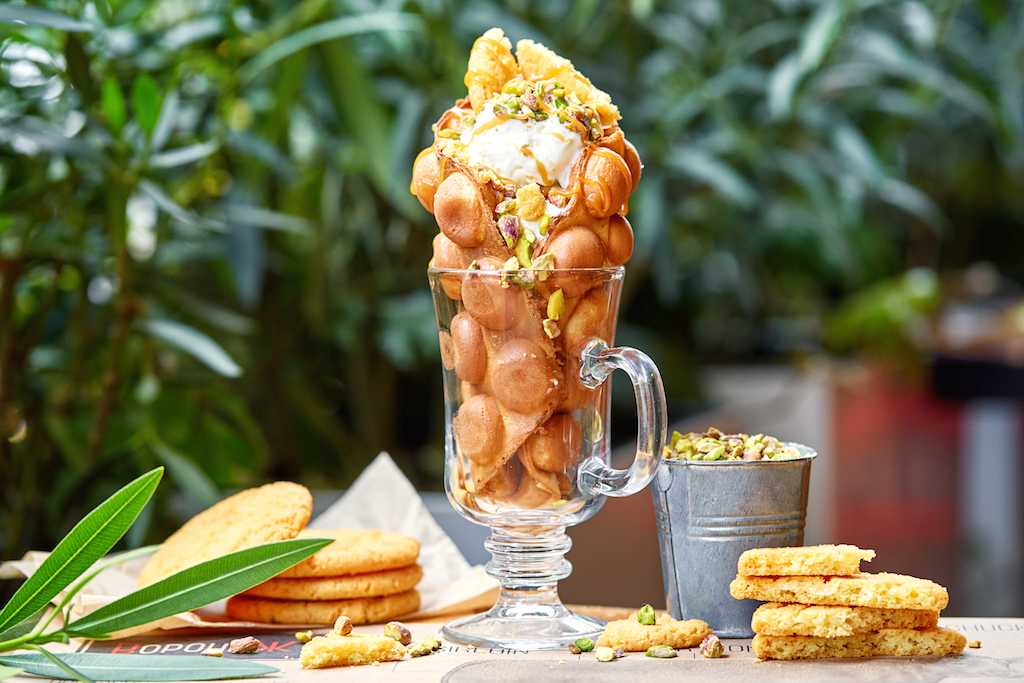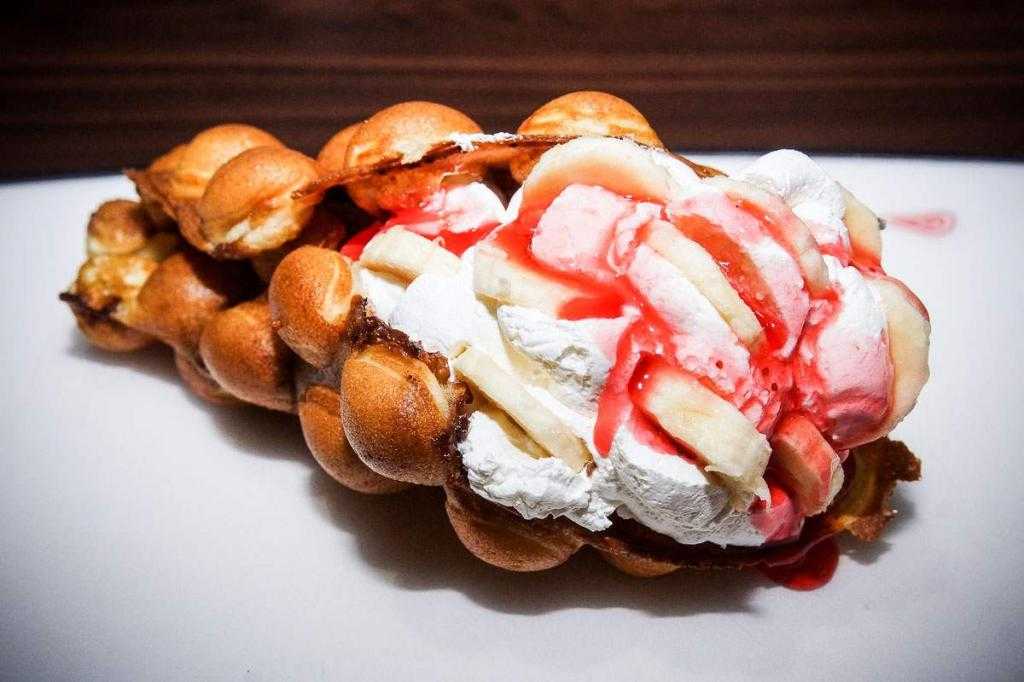 Выпекаются сразу с несколькими начинками. Тестом заполняют особые формочки с углублениями, в которые на этапе обжаривания выкладывают разные начинки. Углубления раздельные, поэтому содержимое не смешивается. Десерт скручивают в форме рожка, подают с мороженым, сливочной «шапкой» или свежими ягодами. Гонконгский десерт интересен тем, что при каждом новом укусе дегустатор ощущает разный вкус, обусловленный начинкой.
