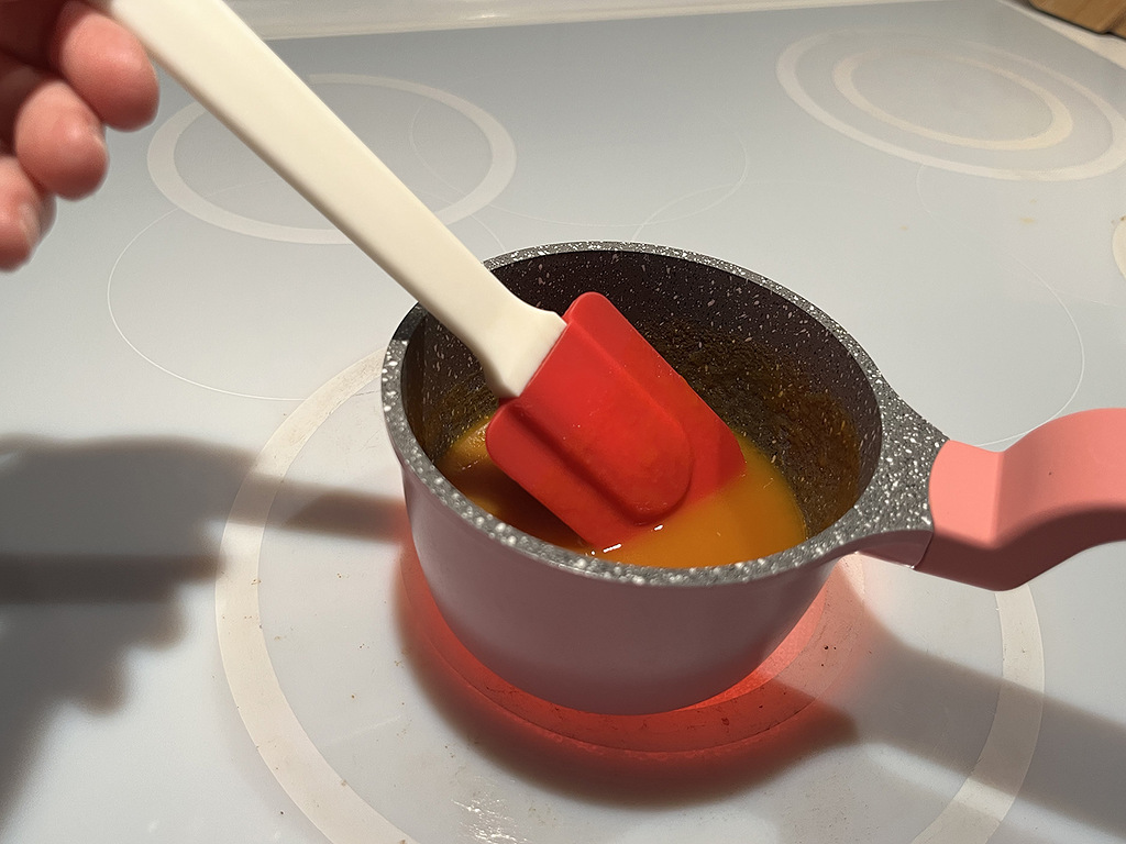 Это все перемешивают в сотейнике, который ставят на огонь и, активно помешивая, доводят до кипения и минуту-две кипятят.