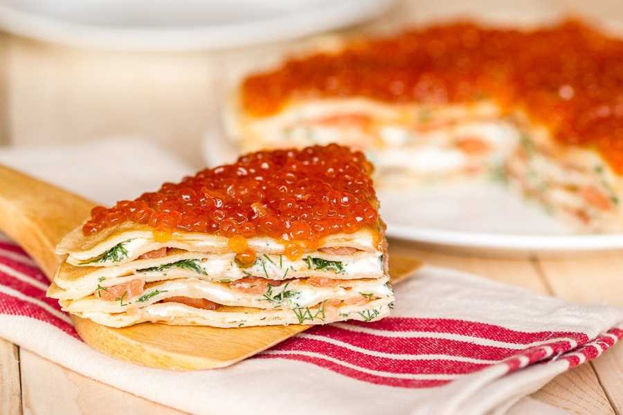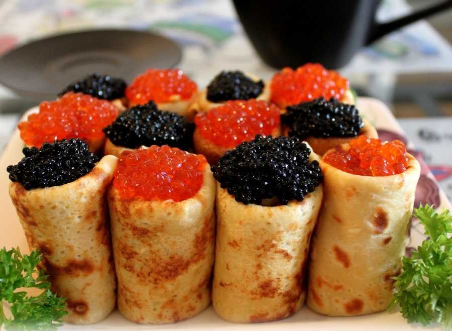 Особое место занимают блины с красной икрой — вкусным, полезным и изысканным продуктом. Его присутствие на столе создает праздничную обстановку, а вкусовые качества намного превосходят привычные бутерброды с икрой. Дополняя друг друга, икра и блины, создают великолепный и неповторимый вкус, который запомнится надолго.