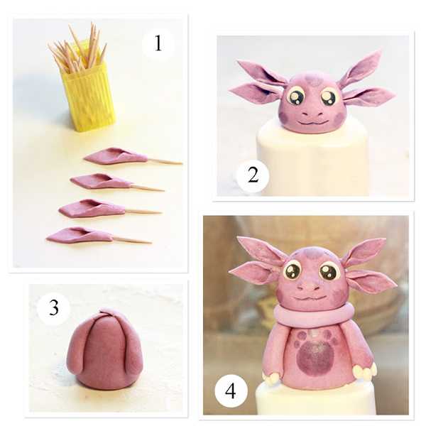 Начинать будем с изготовления украшений, потому что им необходимо подсохнуть, чтобы держать нужную форму. Если у вас хорошо получается лепить фигурки из пластилина, то с мастикой вы тоже справитесь. Если нет, то лучше сделать не объемную фигурку, а вырезать плоскую по трафарету.