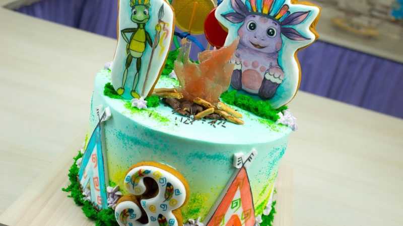 Самый быстрый вариант – торт из пряников, который можно тематически украсить фигурками из мастики, вафельной картинкой или кремовым декором в стиле Лунтика.