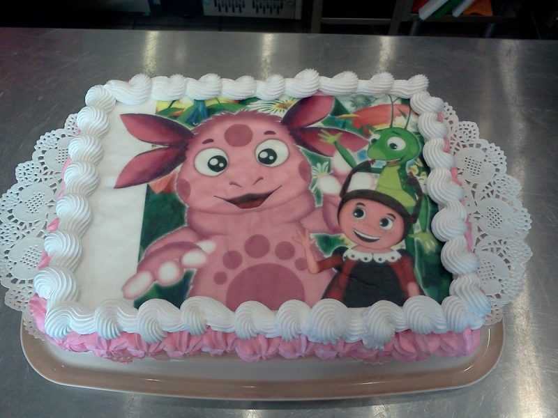 Для тех, кому не просто рисовать кремом или работать с мастикой, есть простое решение – готовые яркие картинки, которые нужно просто наклеить на верхний корж. Торт с Лунтиком и его друзьями, нанесенными на вафельную картинку, может быть приготовлен по любому рецепту.