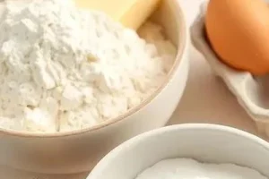 - В большой миске смешайте муку, сахар, разрыхлитель и соль.
