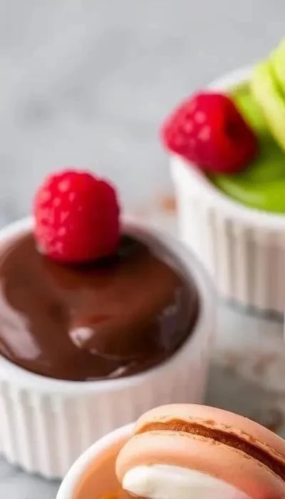 Крем с матча: Смешайте 50 г белого шоколада, растопленного на водяной бане, с 20 г сливочного сыра и 1 чайной ложкой порошка матча. Взбейте до воздушности. Этот крем придаст макарунам нежный зеленый цвет и уникальный вкус.