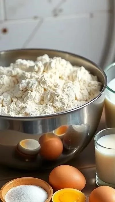 Мука (150 г) – формирует структуру теста, обеспечивая его эластичность и способность удерживать форму. Используйте пшеничную муку высшего сорта. Яйца (3-4 шт.) – связывают ингредиенты, обогащают тесто белком и способствуют его подъему. Влажность из яиц испаряется при выпечке, создавая пустоты внутри профитролей.