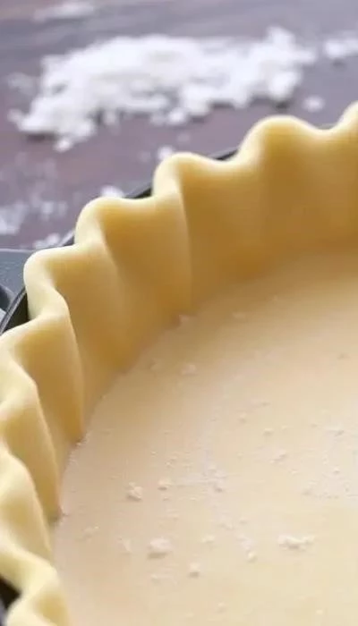 Шаг 8: Аккуратно перенесите тесто в форму для пирога, сформируйте бортики и обрежьте лишнее тесто. Шаг 9: Наколите дно теста вилкой в нескольких местах, чтобы оно не вздулось при выпечке. Теперь тесто готово к заполнению начинкой!