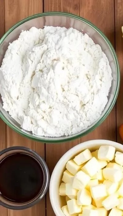 Для теста: 200 г муки, 100 г сливочного масла (охлажденного), 1 яйцо, 50 г сахара, 1 ч.л. разрыхлителя. Выбирайте масло с высоким процентом жирности – это обеспечит рассыпчатость. Муку просейте для воздушности.