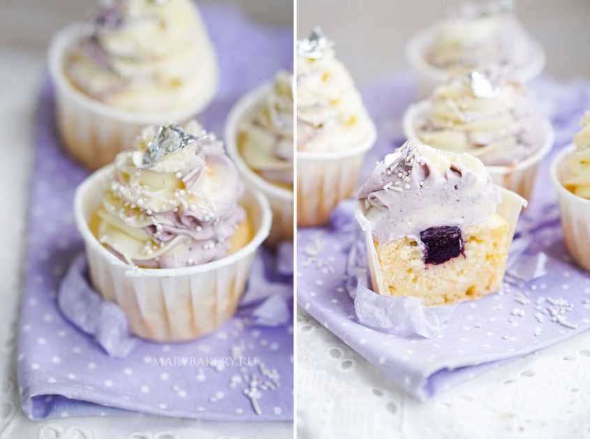 Сочетание лимона и черники уже стало классическим! Я для этих капкейков решила сделать черничную начинку, но вы так же можете добавить ягоды и в тесто в конце приготовления. Сюда отлично подойдут замороженные ягоды в том числе, но будьте внимательны! Если вы положите в тесто больше разрыхлителя и соды, чем это нужно, в процессе выпечки черника может стать не очень приятного и малоаппетитного зеленоватого цвета.