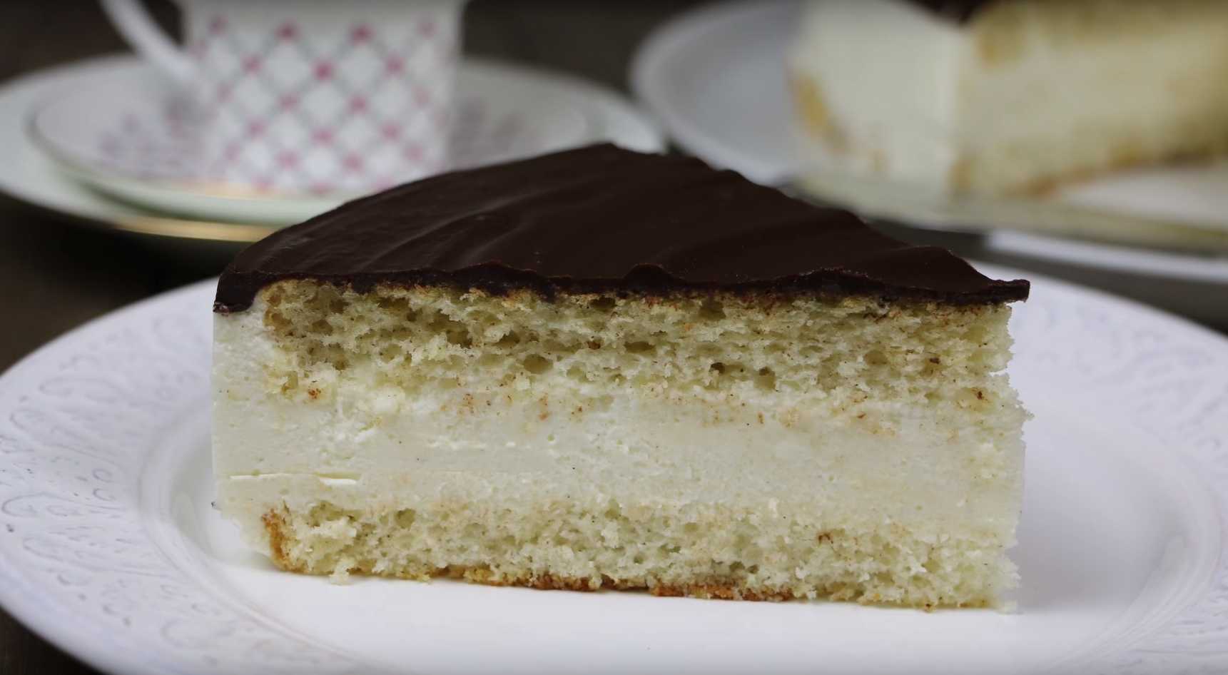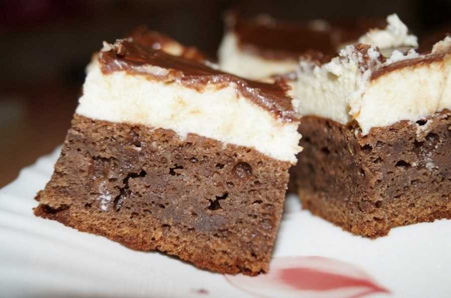 - На завершающем этапе коричневый корж покрывают заварным кремом и сверху поливают глазурью.