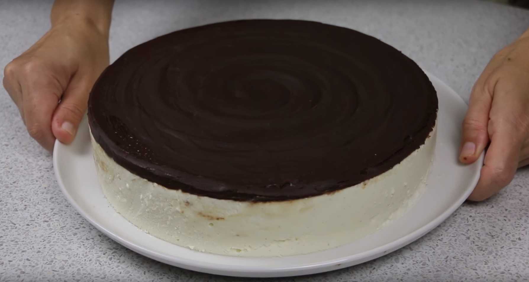 - Бисквит достать из холодильника, равномерно полить глазурь, покрывая верх и бока.