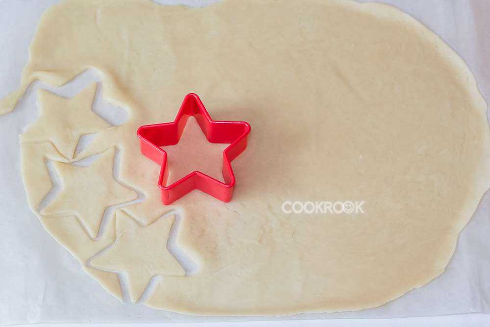 - После раскатайте тонкий пласт и нарежьте печенье с помощью стакана или специальных формочек.
