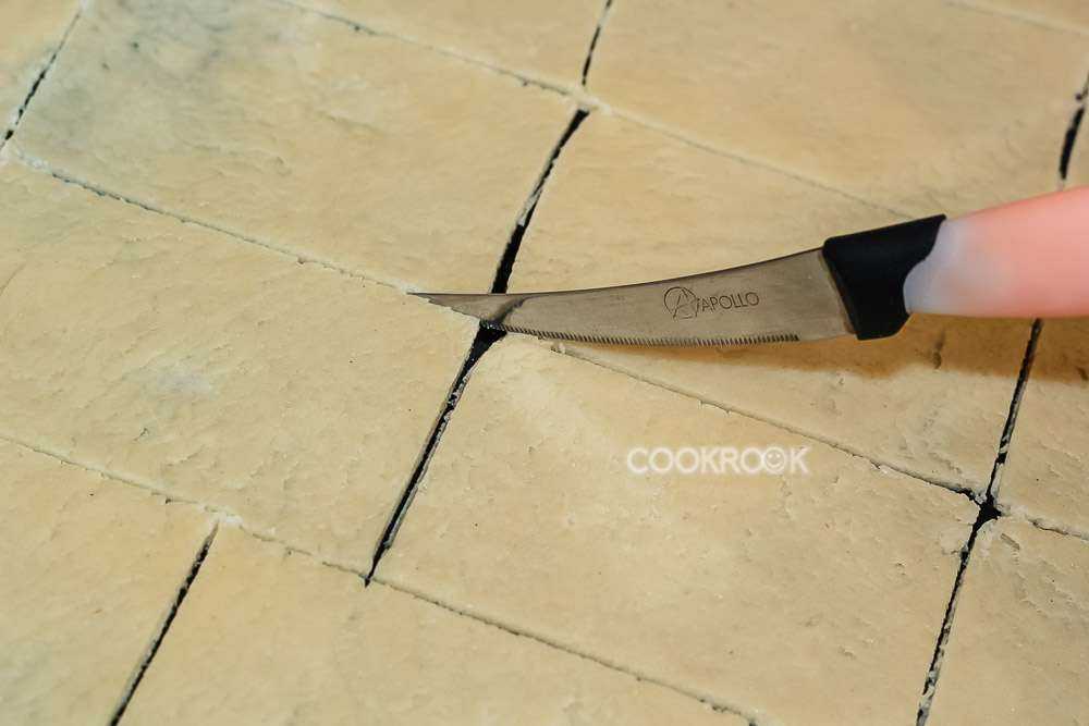 - Спустя указанное время поделить на части, превратить их в тонкие пласты, не больше 1,5 миллиметра толщиной и вырезать любые формы.