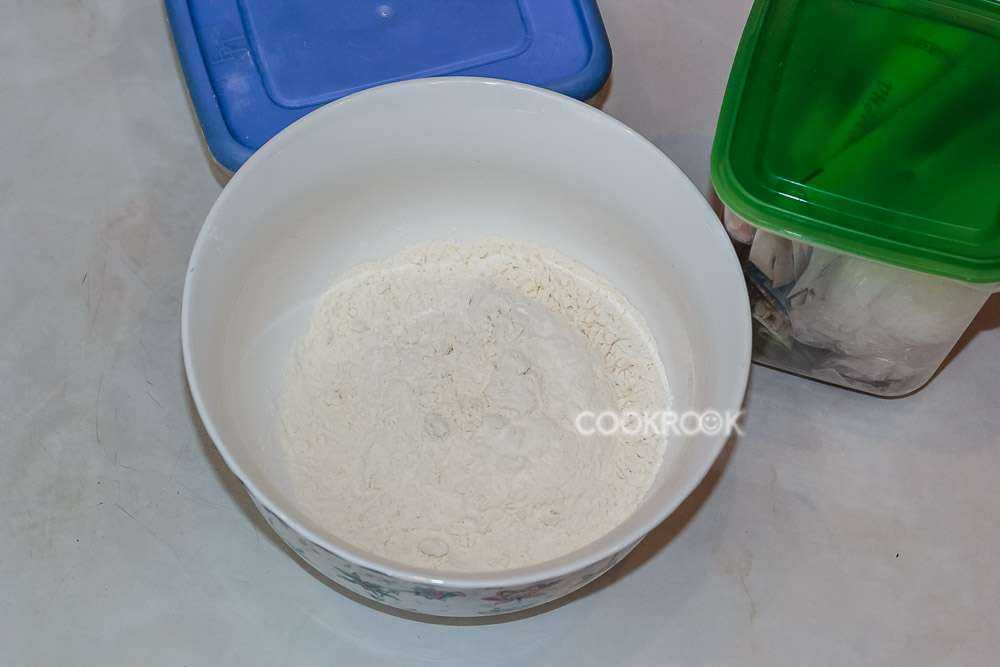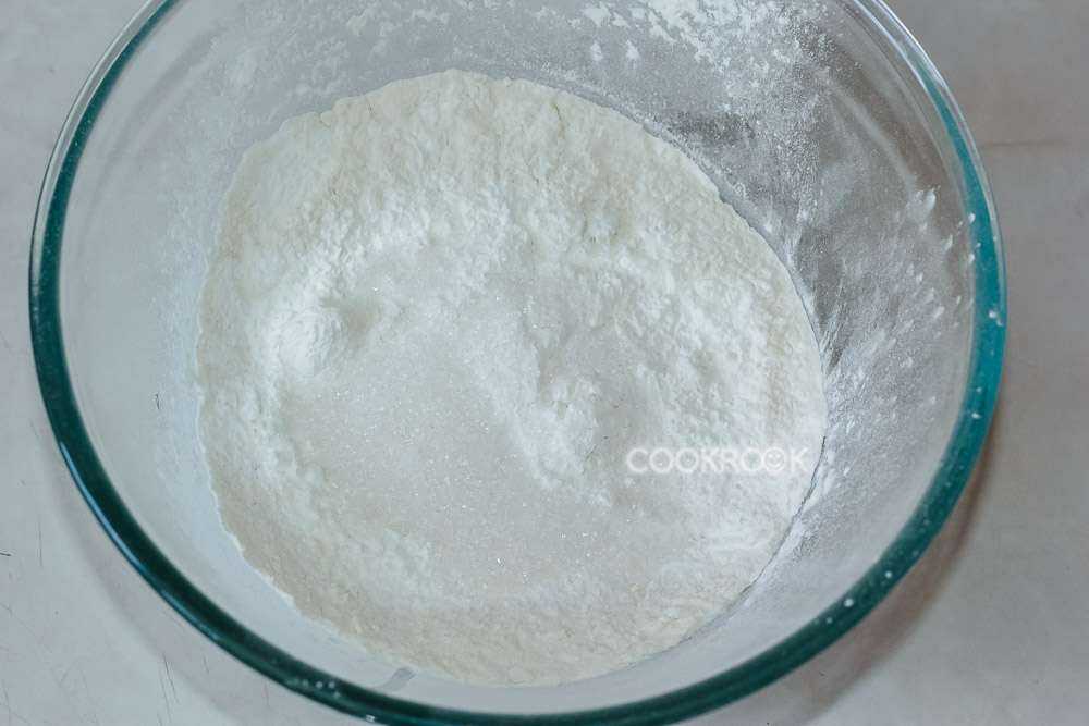- Подготовьте глубокую емкость, выложите в нее все сыпучие ингредиенты из списка и хорошо перемешайте.