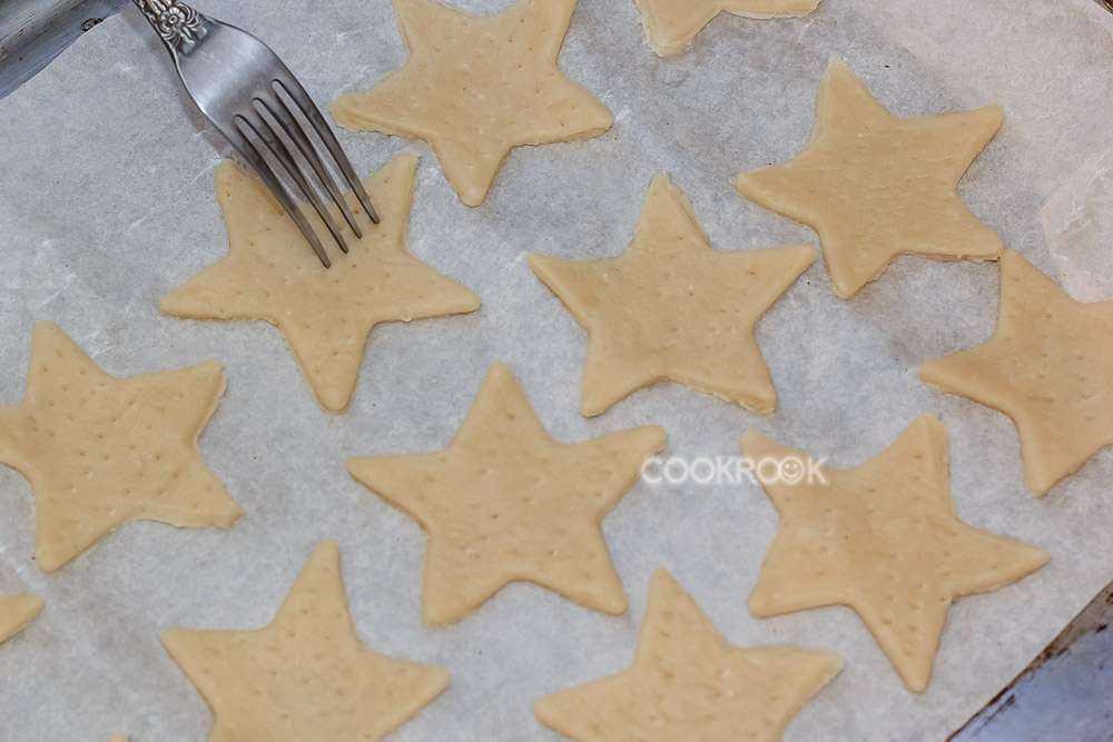 - Духовку нагреть до 180 градусов. Переложить вырезанные коржики на противень. Печь минут 15 до слегка зарумянившихся краев. Главное, не передержать коржики в духовке, иначе они превратятся в обычное печенье.