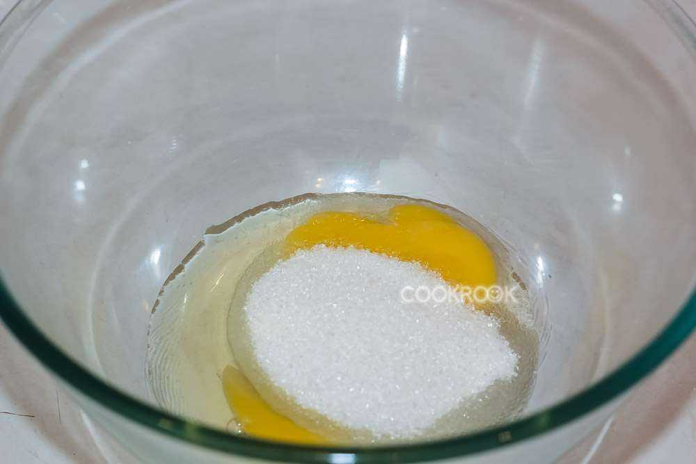 Во второй чаше смешать яйцо, молоко, масло и сахар.