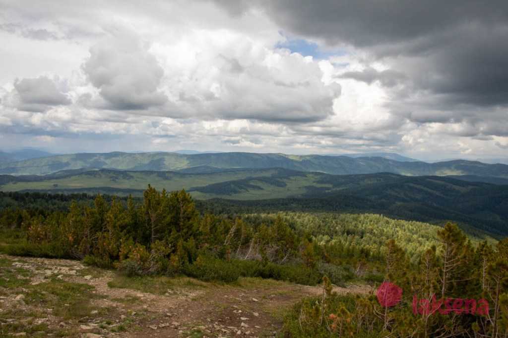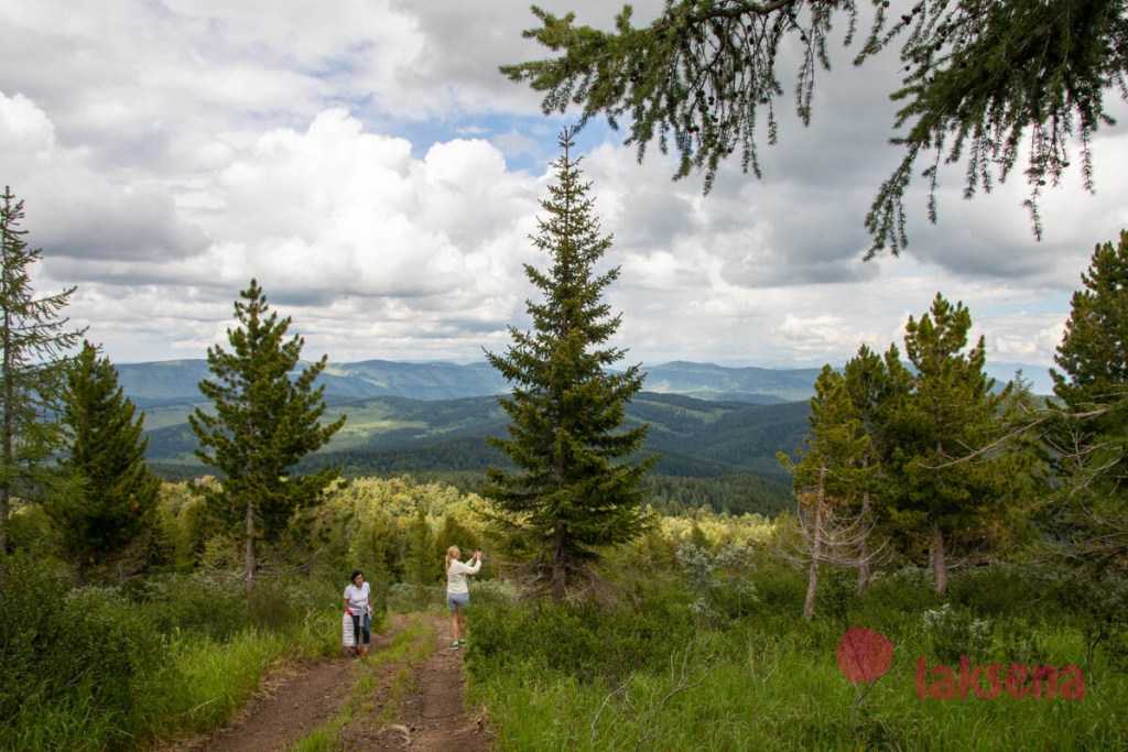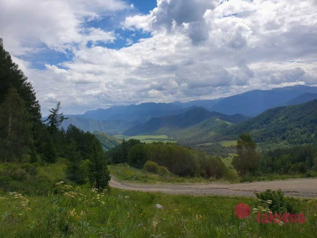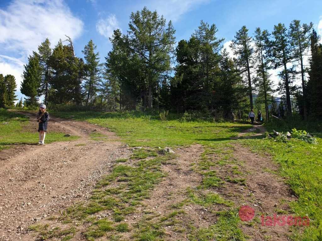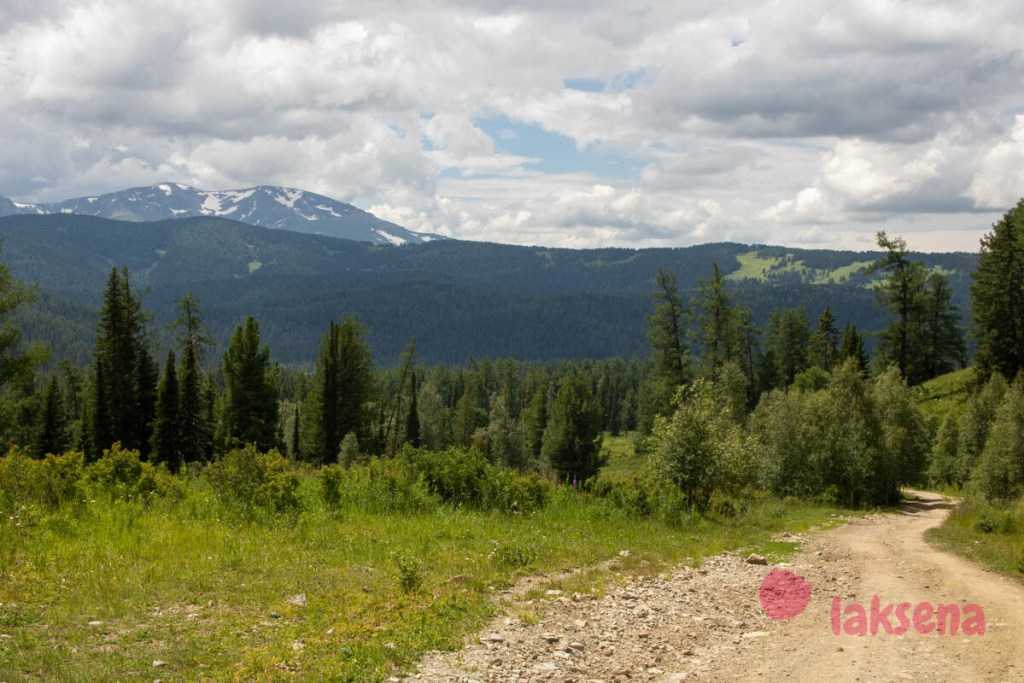 Дорога проходит из Усть-Коксы мимо деревни Кайтанак (высота 1015 м), далее она идет полями постепенно набирая высоту. Вскоре подъем становиться еще круче. По дороге попадается небольшой серпантин, выводящий нас на небольшой перевал Кайтанакский. Видна гора Красная, позади Катунский хребет, впереди вершины хребта Холзун. Далее дорога идет южным склоном небольшого хребта Актайга в западном направлении. Проезжаем Серебряный родник – небольшой источник прямо у дороги, чуть дальше деревянную скульптуру Хозяина горы, символизм которой никого не оставит равнодушным. Здесь у нас была небольшая остановка.