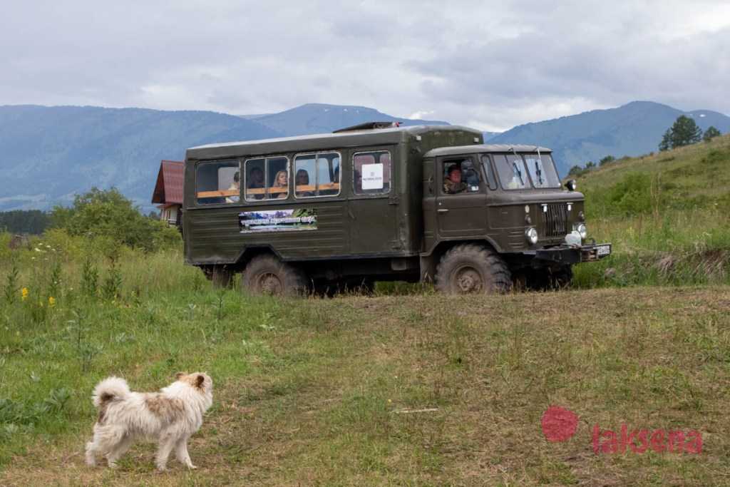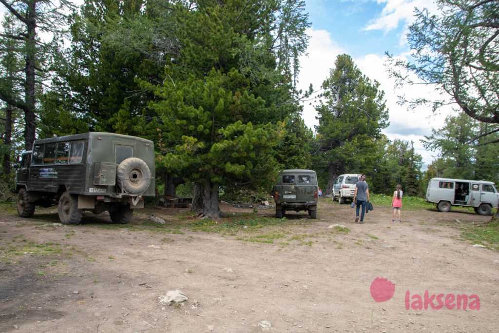 Туристов доставляют на озеро на УАЗиках — булках, микроавтобусе Delica (самый комфортабельный вариант) или на ГАЗ-66 («шишига», самый не комфортный и медленный вариант). Наша большая компания поместилась только в ГАЗ-66 (УАЗики были уже все заняты). Цена составила 1700 руб. с человека.