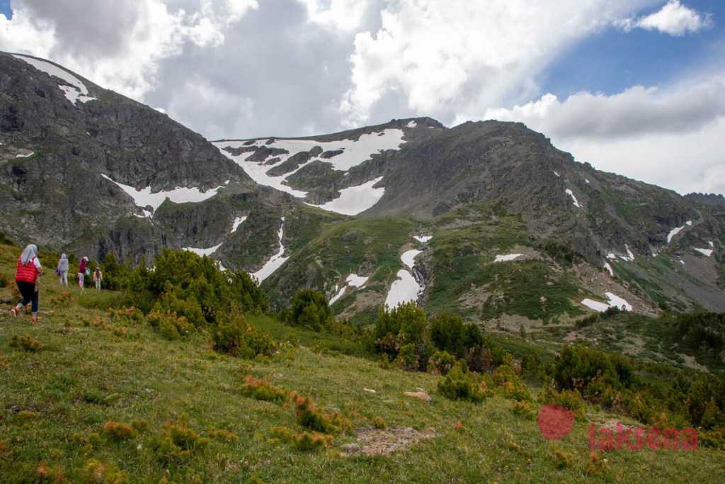 Зато увидели озеро в восточных отрогах горы, к которому с экскурсией не доходят. Оно находилось круто внизу слева от нашего подъема, осмотреть его можно было только сверху.