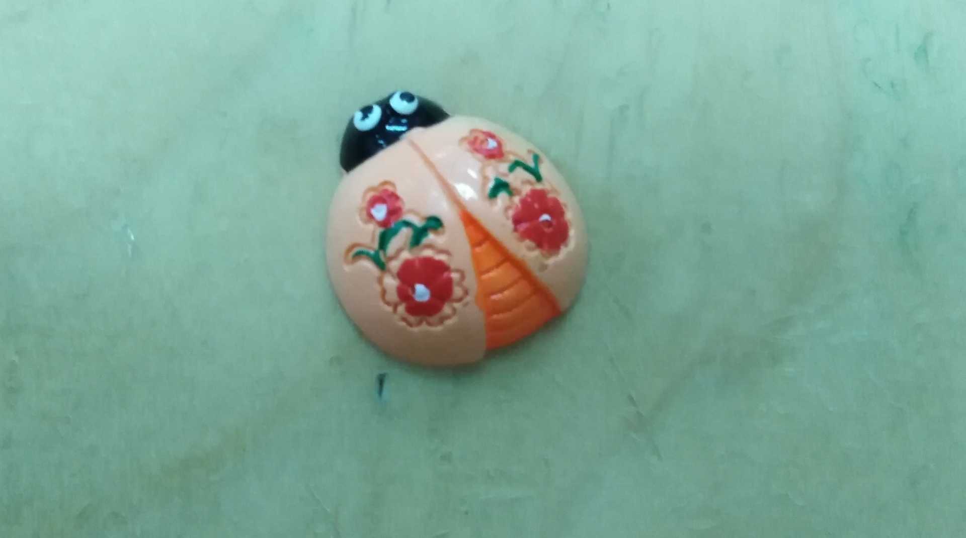 -божья коровка в качестве украшения (осталась от детской резинки для волос).
