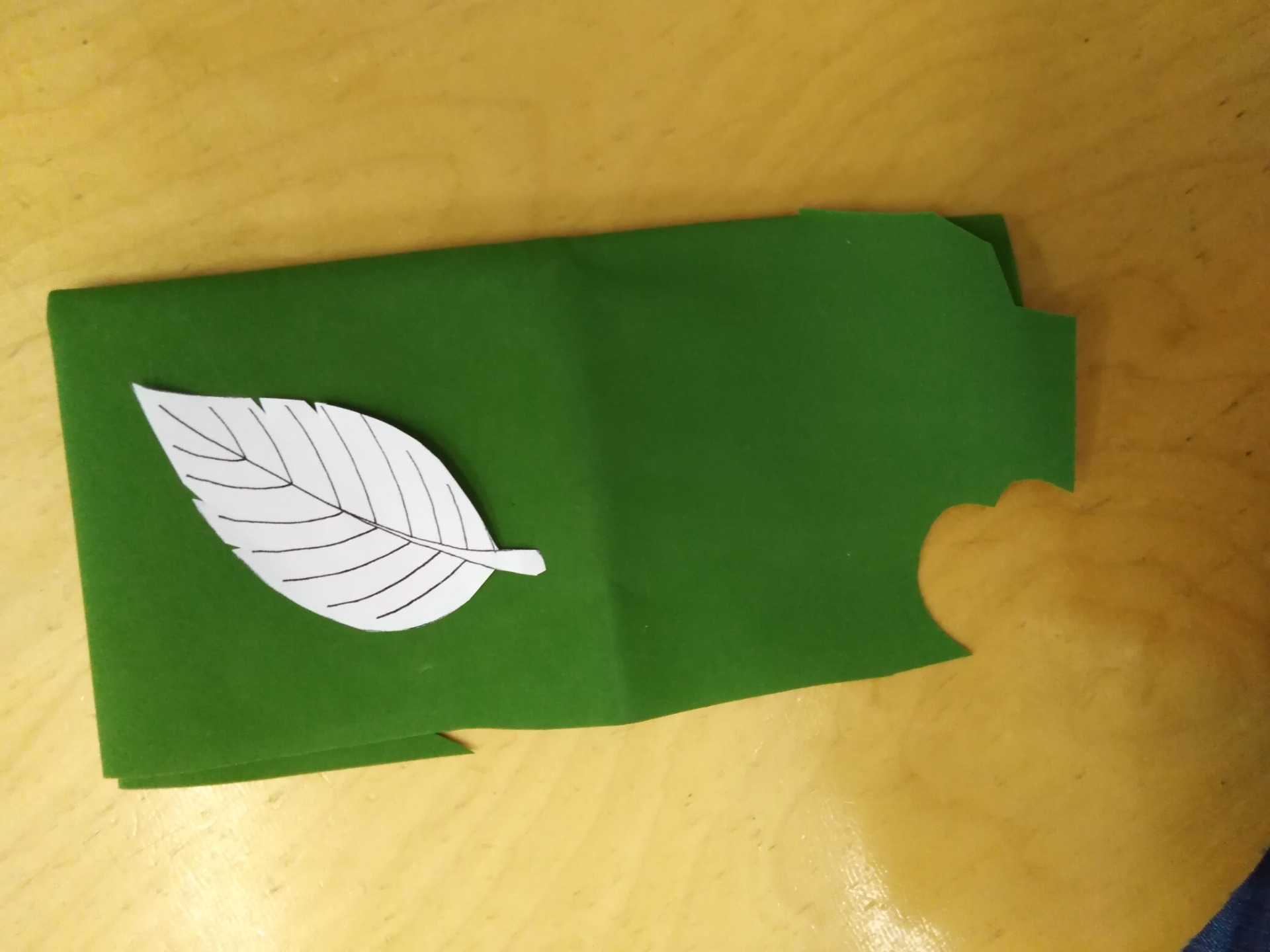 Когда лист готов клеим его к веточке. Пространство вокруг заполняем фатином. На лист приклеиваем жучка.
