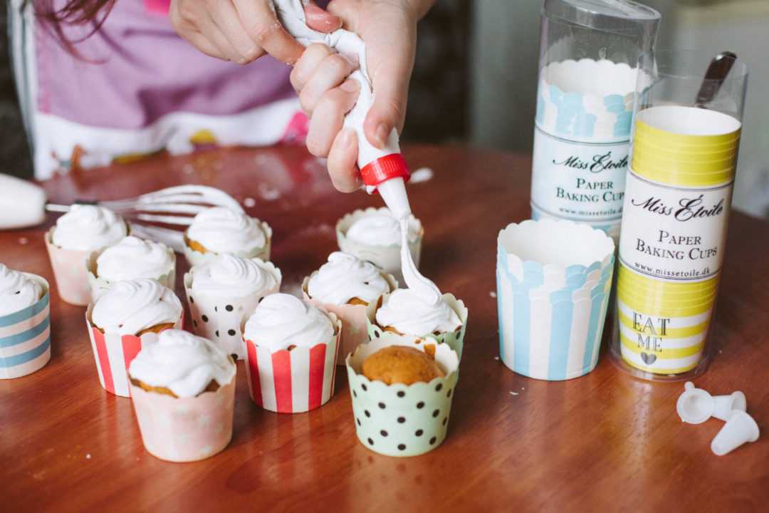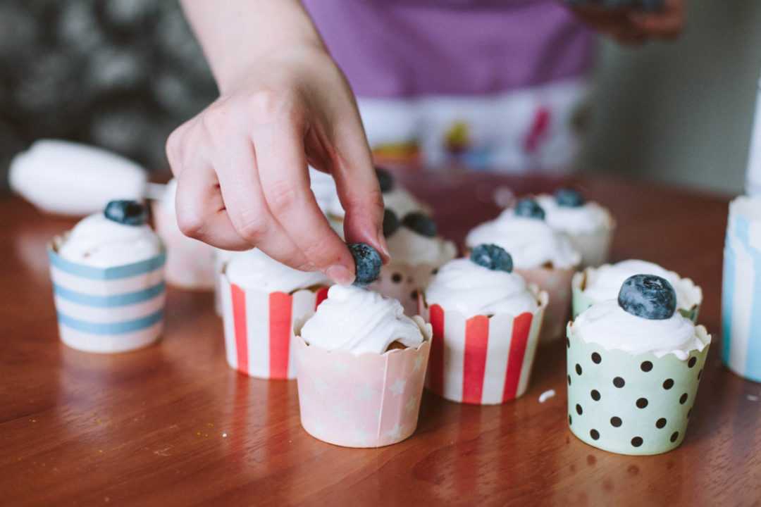 Вы также можете использовать любой крем для капкейков на свой вкус. Это могут быть рецепты на основе белкового крема, с добавлением шоколада и многие другие. Чтобы Ваши кексы выглядели красиво, воспользуйтесь кондитерским мешком/шприцем при нанесении крема. Завершить образ десерта можно добавлением мелких ягод сверху крема.