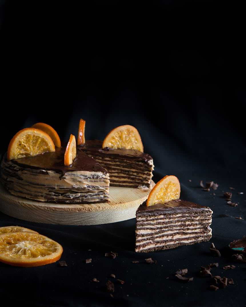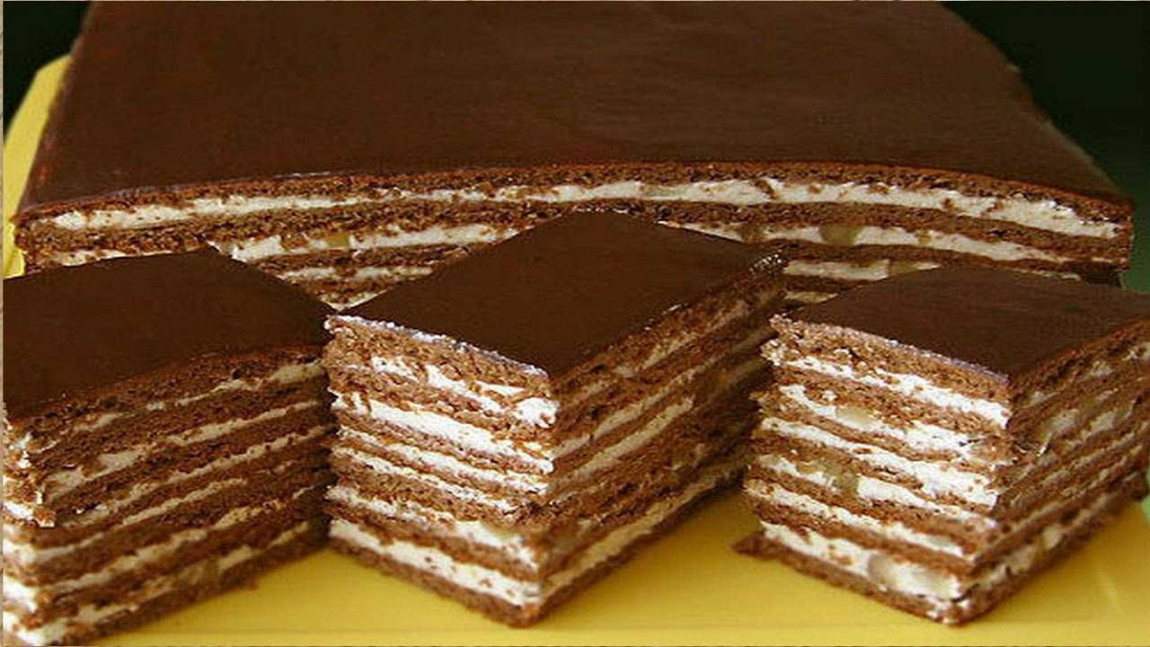 Полученным заварным кремом необходимо щедро смазать каждый шоколадно-медовый корж, собирая пирамиду. Не забывайте мазать края, иначе они останутся чересчур сухими. Что касается поверхности, то ее можно украсить тертым шоколадом, рубленными орехами ил залить шоколадной глазурью.