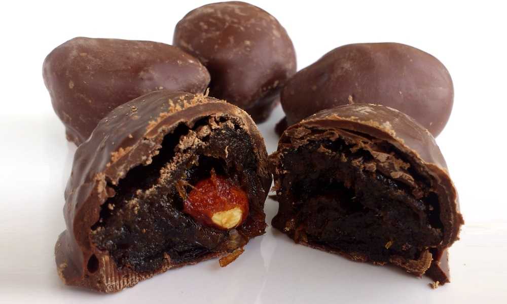 Кстати, о сухофруктах. Конфеты с курагой, черносливом, изюмом получили большое распространение среди сладкоежек. Кроме того, эти начинки благотворно влияют на здоровье: улучшают пищеварение, работу сердца, иммунитет. Наиболее распространены сухофрукты в шоколаде с названием «Леди Ночь». Это чернослив, политый щедрой порцией горького шоколада. Весят такие конфеты немало — 40 г, но и польза в них тоже немаленькая. Сам десерт очень сытный и содержит клетчатку. Так что на переваривание такой сладости организм затратит больше энергии, чем на переваривание простого шоколада. Тогда и меньше энергии уйдет в жировые запасы. Но все же употреблять такие полезные шоколадные конфеты в больших количествах все же не стоит, ведь сахара в них содержится предостаточно.