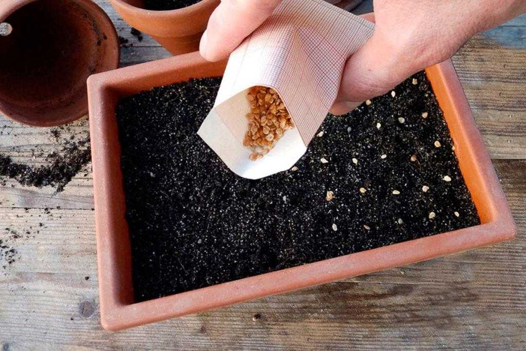 Питательный субстрат раскладывают по контейнерам, и высаживают семена, заглубляя их на глубину до 1,5 см. Затем проводят полив, а сверху накрывают емкости стеклом или пленкой, чтобы создать внутри эффект теплицы для более быстрого прорастания семян.