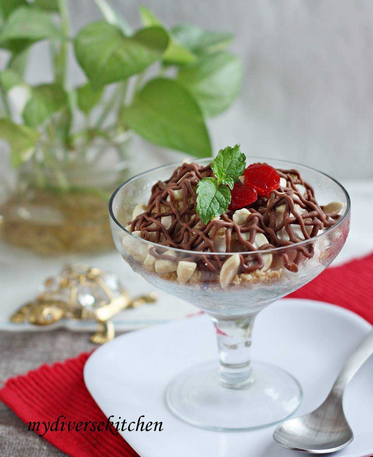 Верх мороженого можно присыпать шоколадной стружкой, кондитерской присыпкой, кусочками орешков, маршмеллоу и другими конфетами. Кусочки засахаренных фруктов, фигурки из шоколада, шоколадные соусы, целые ягоды также используют для украшения мороженого.