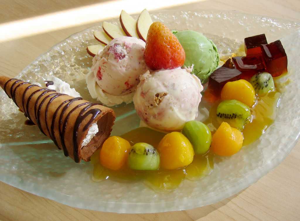Чем украсить мороженое: сладкие трубочки и вафли, печенье красивой формы, взбитые сливки из баллончика добавят вертикаль — вкусно и красиво, дополнительно они могут выполнять роль ложки. Красиво выложенный слой нарезанных фруктов или ягод на дне бокала и слой мороженого всегда производят хороший эффект.