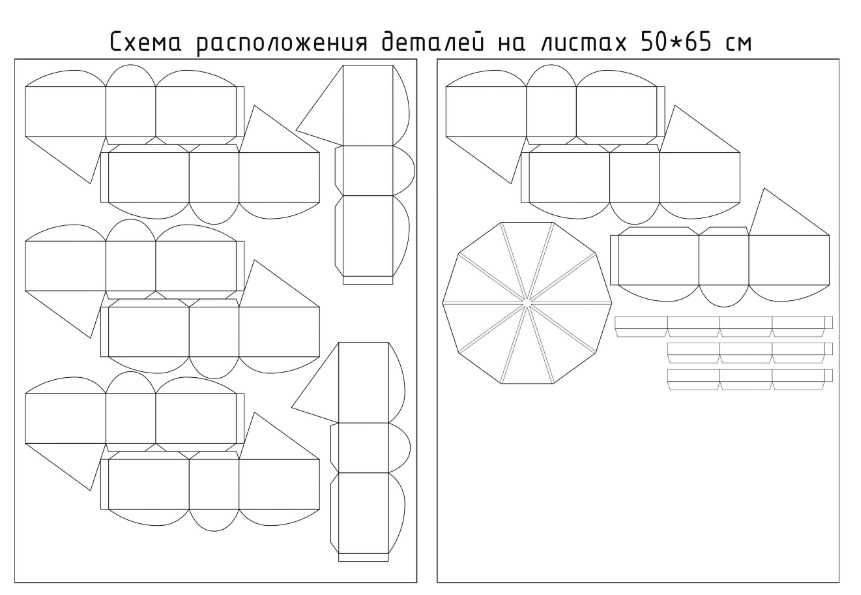 Выбираем один из представленных ниже шаблонов. Там есть два варианта для создания крышки — либо с волнистым, либо с прямым краем. Два выбранных вами трафарета для основания и для крышечки – посылаем на распечатку.