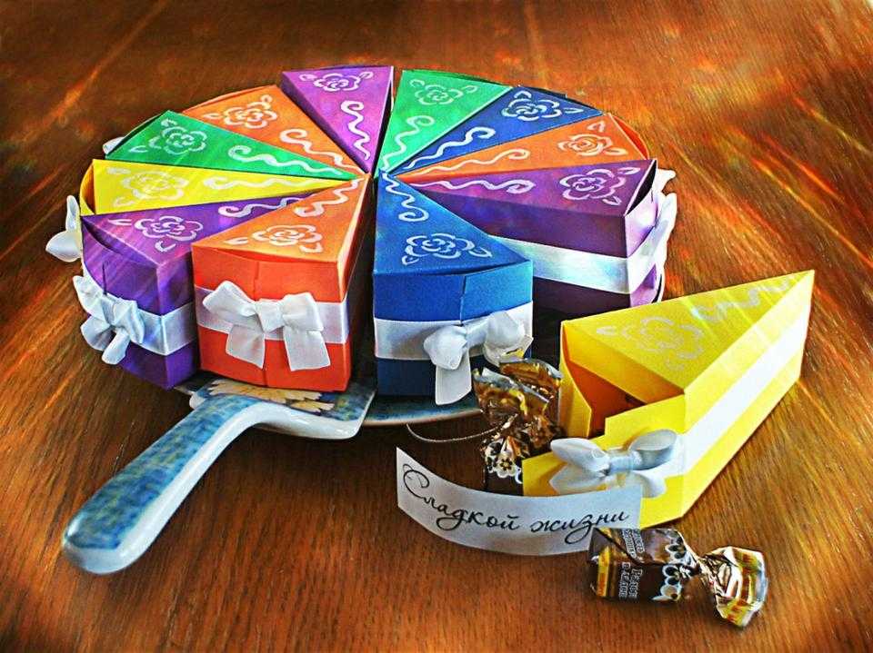 - Сделайте своими руками торт из бумаги и вложите в каждый кусочек придуманные заранее пожелания.