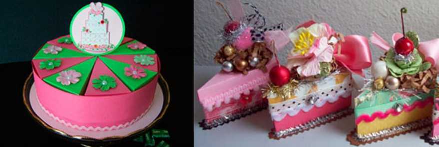 - Кусочек торта из картона и бумаги можно изготовить двумя способами (на самом деле их гораздо больше, но те, что мы предложим вашему вниманию – самые удобные и простые).