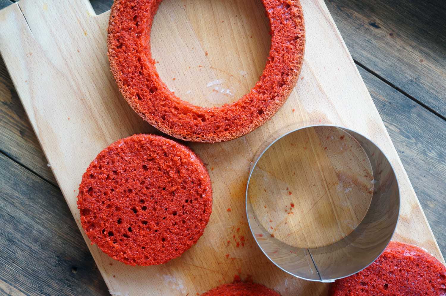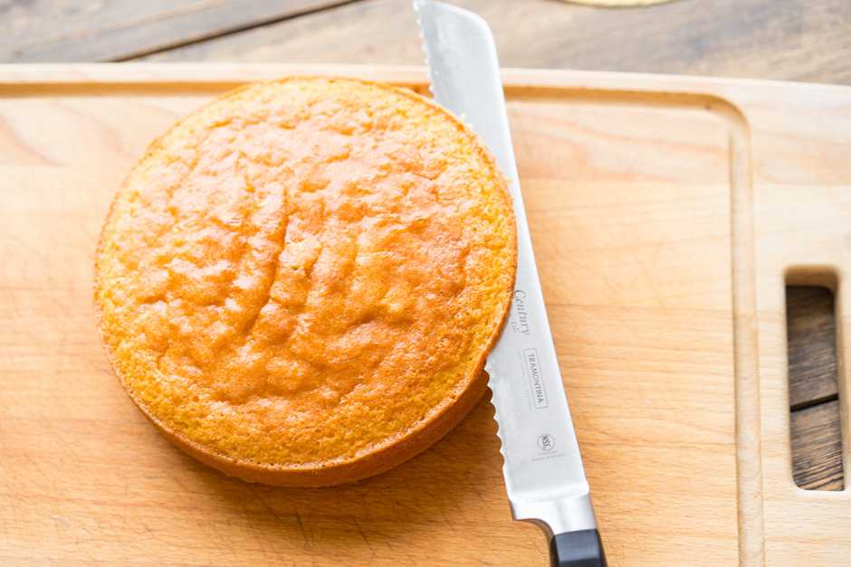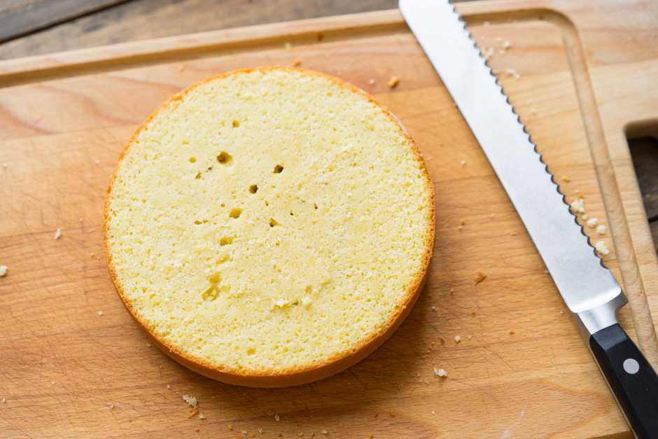 Иногда бока коржей также срезают. Нужно это в двух случаях: когда бока сильно подгорели и стали жёсткими, или когда вы делаете белый бисквит и хотите, чтобы бока на срезе торта были белыми (без тонкой полоски от корочки). Ещё бока можно срезать, чтоб они лучше кремом пропитались.
