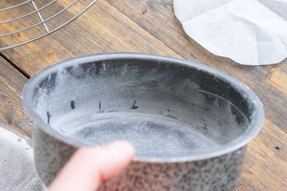 Не скажу, откуда пошло такое название, но это лучший способ подготовить форму для будущего коржа. Принцип очень простой. Стенки смазываются холодным сливочным маслом (так слой будет тоньше), а сверху подпыляются мукой. Излишки муки высыпаем. У нас в руках форма, с тонким слоем муки на стенках. Я пошел дальше, и использую кружочки пергамента, которые кладу на дно формы. Так вообще нет проблем с выемкой коржей, а мыть форму не нужно. Обычно это выглядит так: делаю французскую рубашку, заливаю порцию теста и выпекаю корж. Вынимаю его из формы, остужаю её немного, делаю ещё раз рубашку и снова выпекаю следующий корж. Мыть ничего не нужно. Я даже пергамент использую от первого коржа — снимаю его и кладу на дно формы.