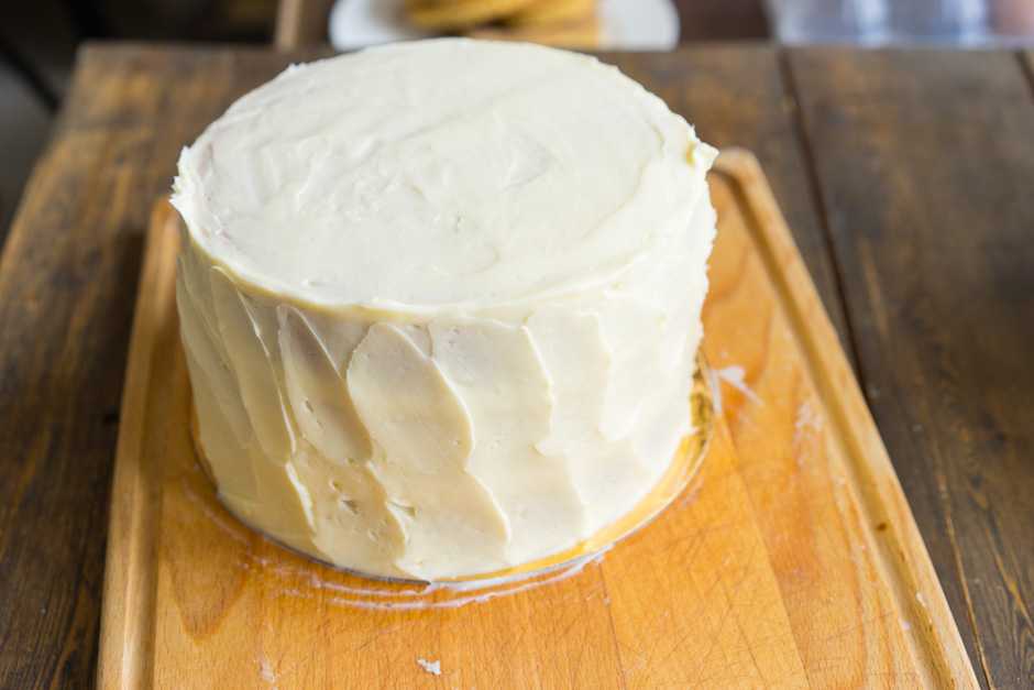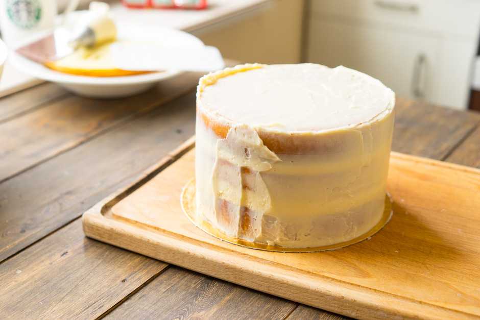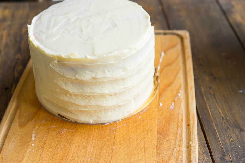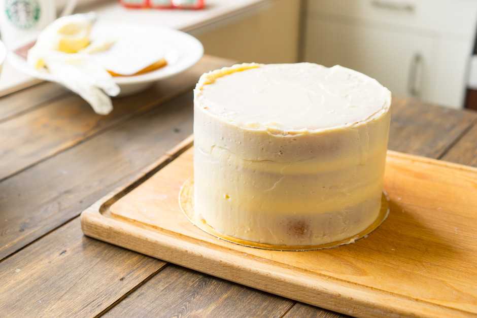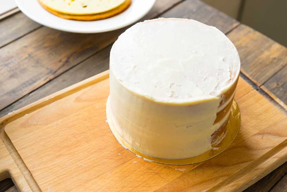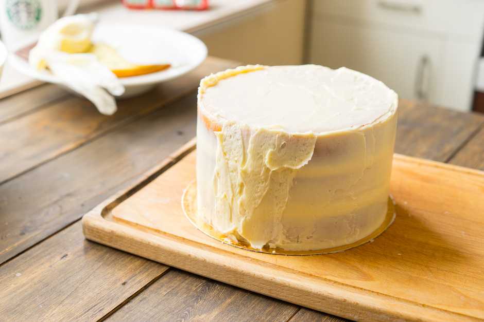 Помните, что крем из холодильника довольно густой, а, постояв на столе, становится мягче. У каждого состояния свои плюсы и минусы. Мягкий нежнее и нужны уверенные движения шпателем, зато холодный крем иногда как бы крошится. Следите за температурой крема и по необходимости убирайте в холодильник.