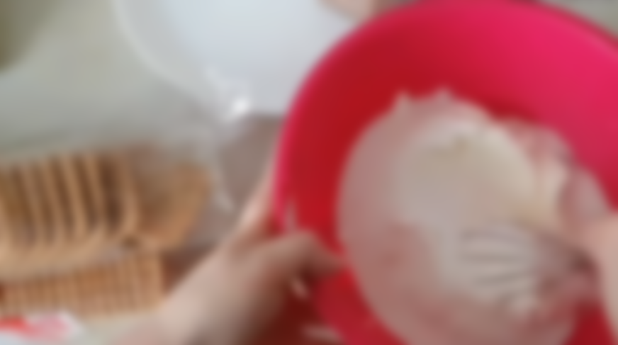 - Взбить 900 г сметаны со 130 г сахара и 10 г ванильного сахара.