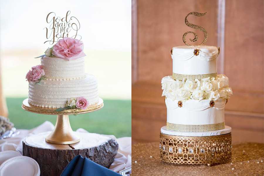 Ниже на фотографиях вы увидите примеры двухъярусных и трехъярусных тортов на свадьбу.