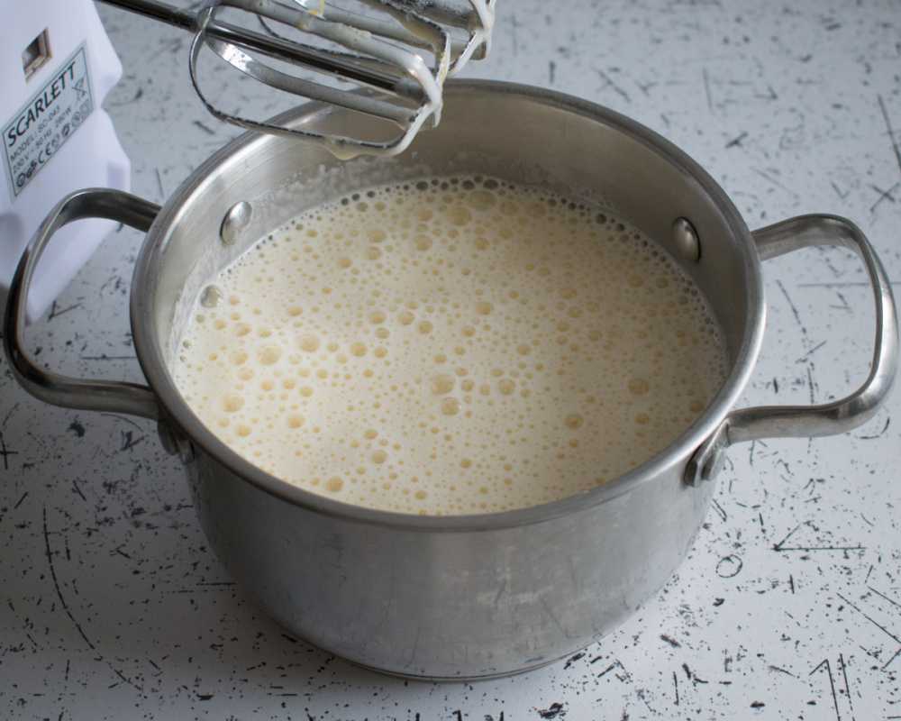 Пока наше бисквитное основание мирно выпекается в духовке, займемся приготовлением кремообразной массы для пропитки вкуснятины.