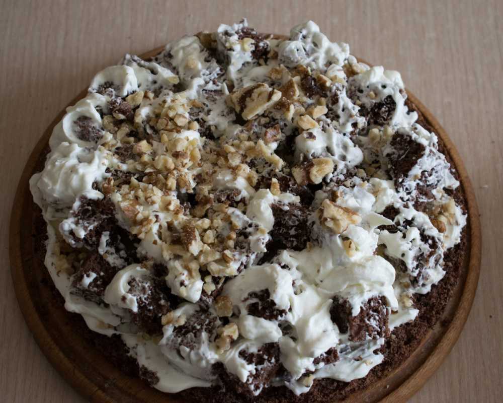 Подобные рецепты мне нравятся больше всего. Люблю готовить различные торты без выпечки и получаются они ничуть не хуже. Вместо бисквита мы возьмем два вида печенья — обычное и шоколадное. А можно даже делать такой десерт из пряников, только их надо будет нарезать кружочками.