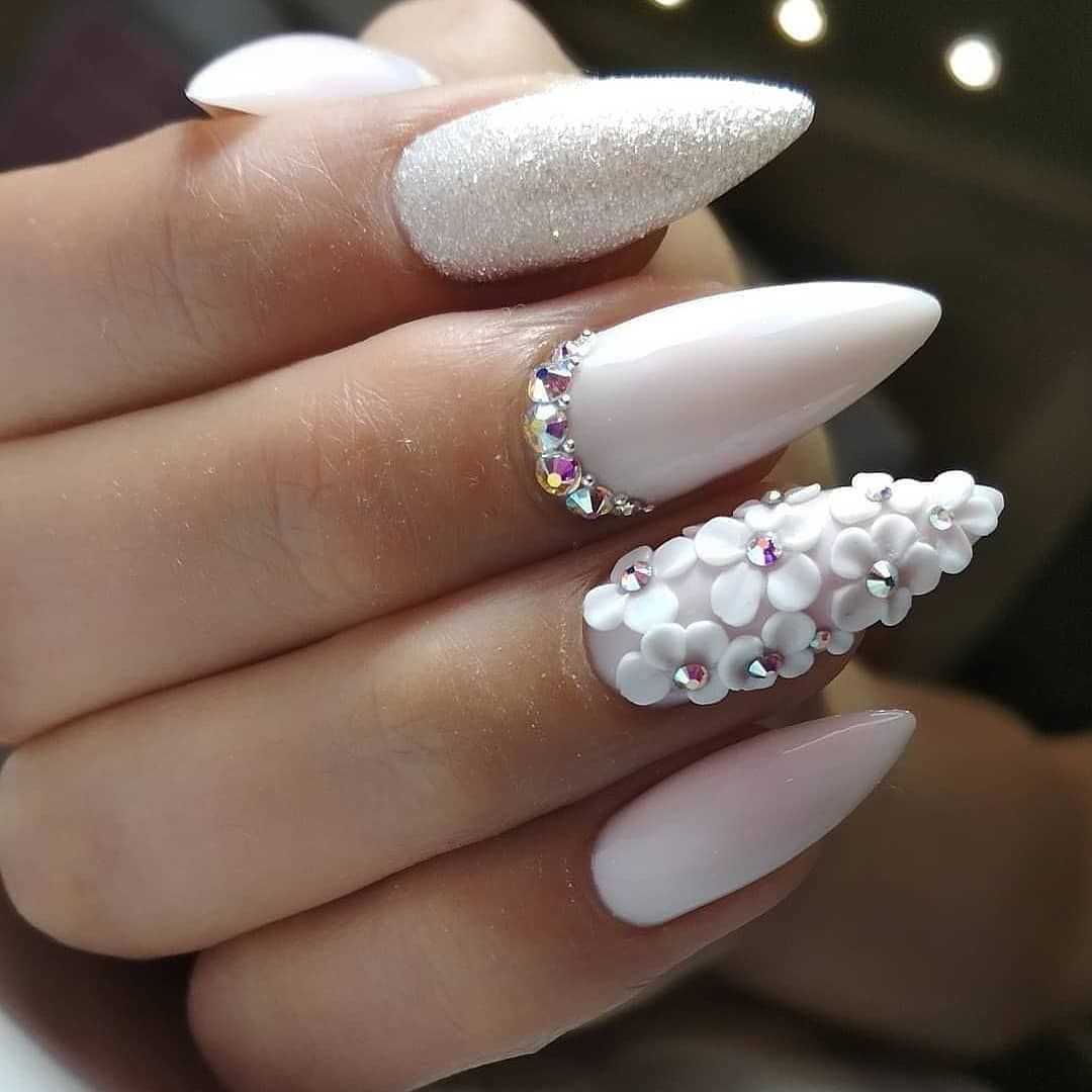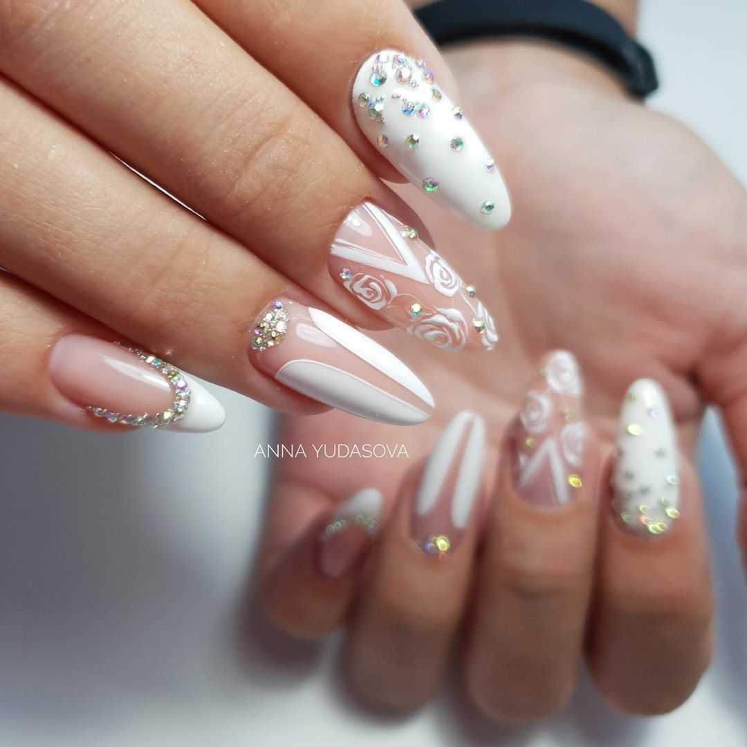 Длинные ногти можно украсить рисунками, узорами, стразами, камнями, эффектно будет смотреться французский нейл-арт или использование воска. Если вы выбрали объемный дизайн, вы можете сбалансировать его, разбавив другими цветами.