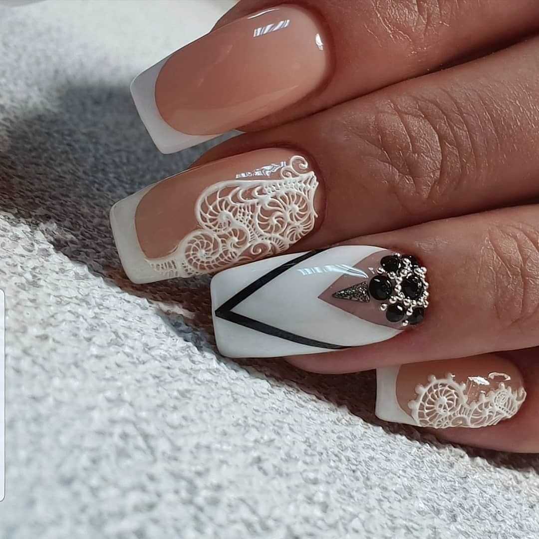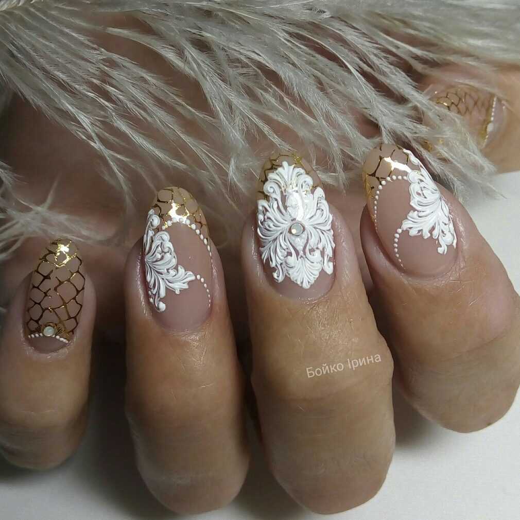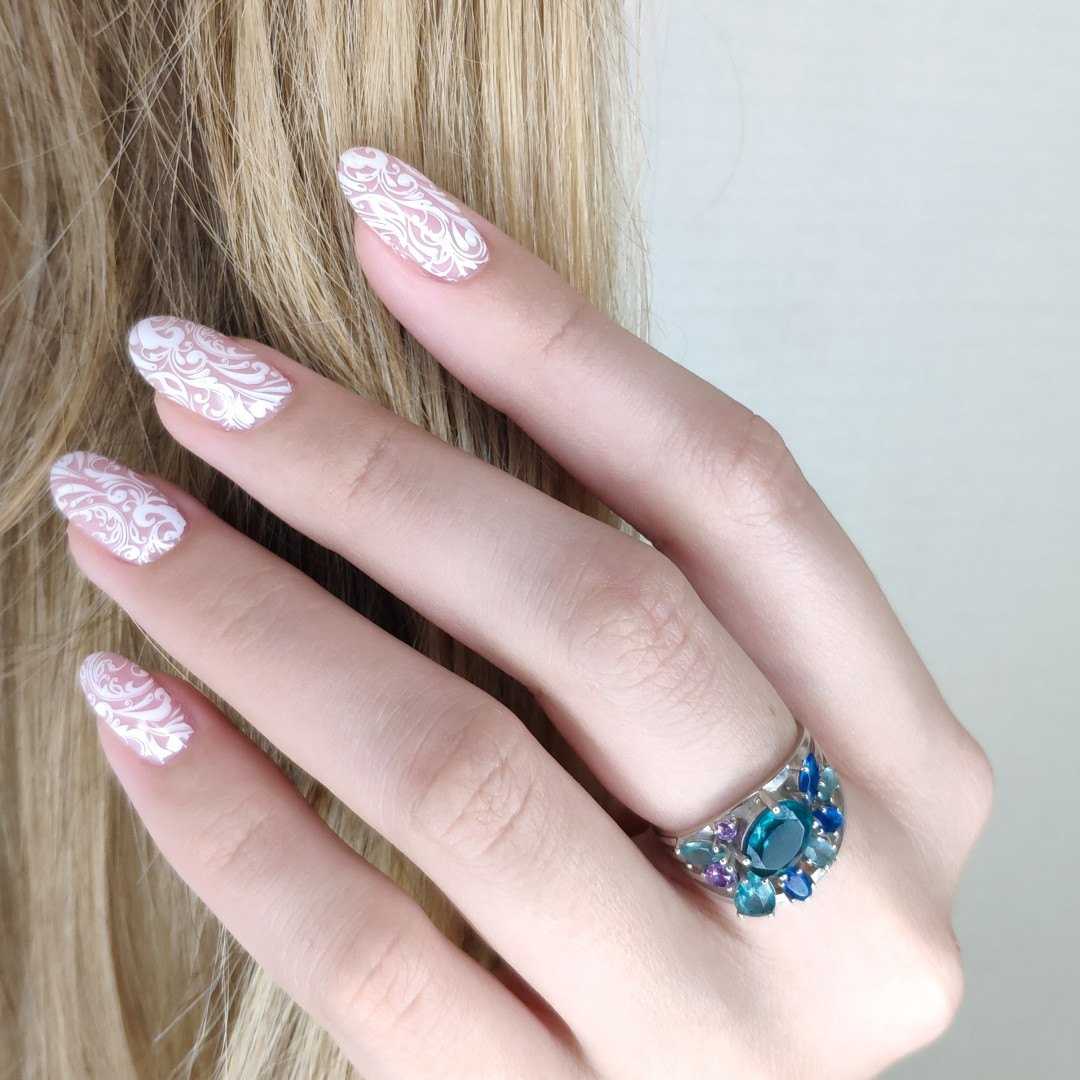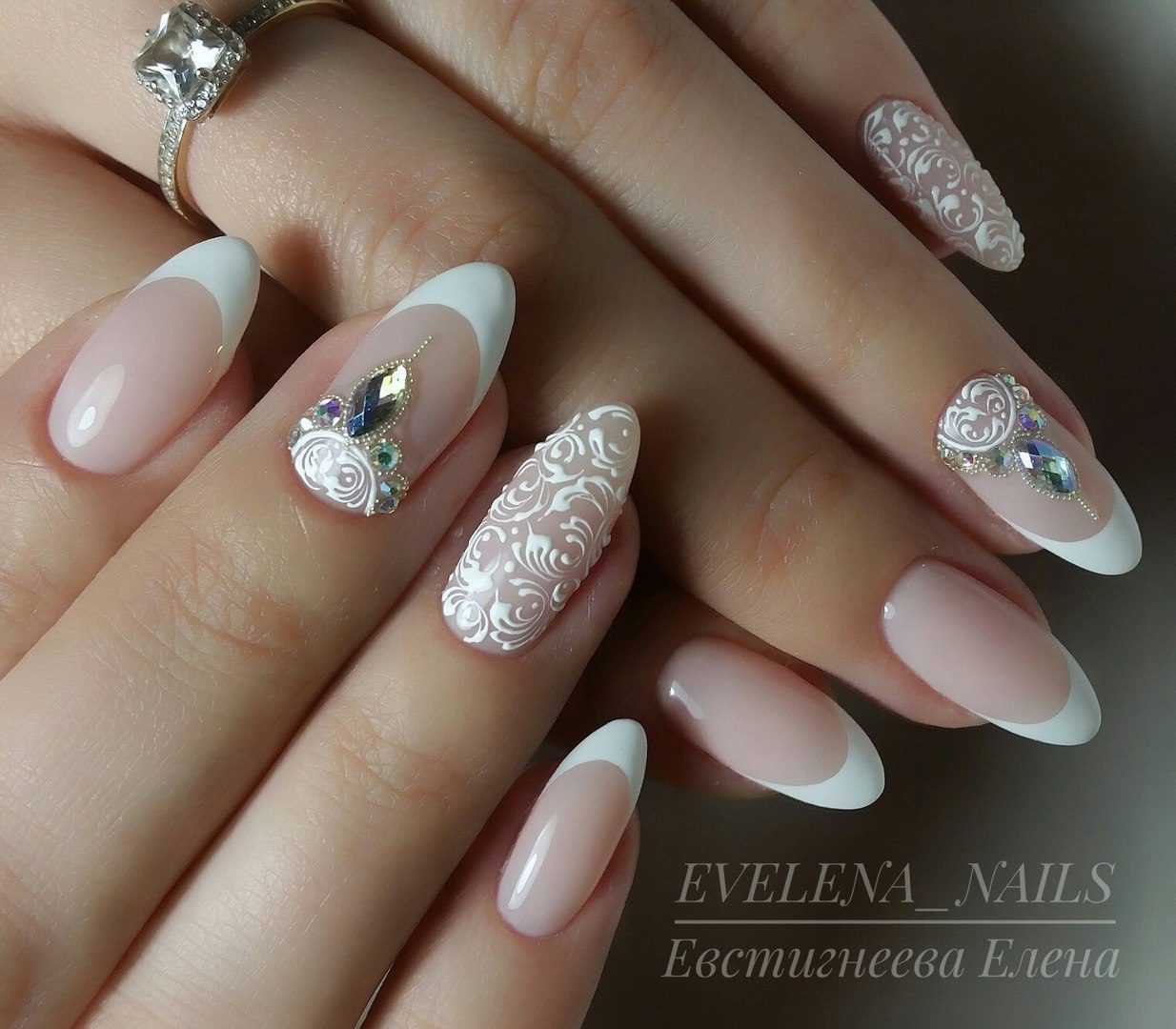 Здесь улыбка формируется основания ноготков. Цвета украшений могут быть любыми. В качестве оформления можно выбрать фото или лепнину. Лунный нейл-арт чаще всего используют невесты. Такая укладка ногтей занимает много времени и требует многоступенчатой работы профессионалов.