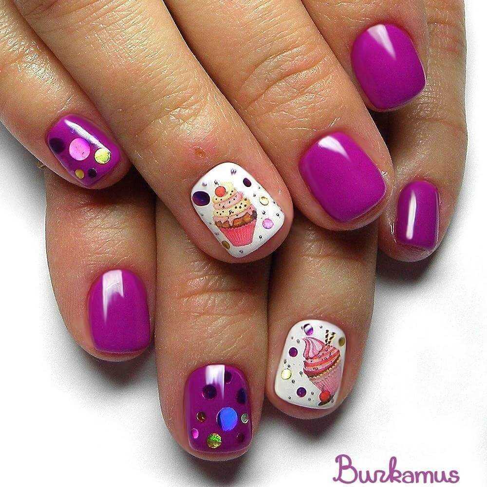 Если вы не располагаете достаточным количеством времени, но хотите украсить ногти сладкими кексами, можно прибегнуть к специальным наклейкам. С их помощью процесс будет намного проще. За основу можно брать не только однотонные лаки, очень здорово будет смотреться лунный или французский дизайн.